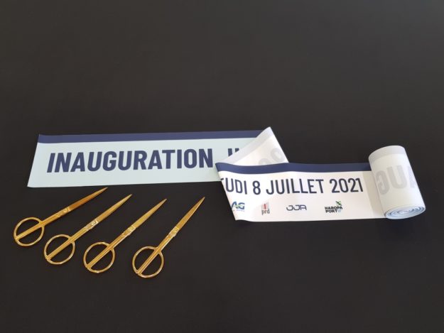 Pour vos évènements, AVS Communication réalise des kits inauguraux imprimés et entièrement personnalisables selon vos goûts et envies. Ici, un ruban et 4 paires de ciseaux dorées. Vous pouvez également ajouter un coussin, une boîte de rangement, une housse pour les ciseaux… Demande de devis pour estimation du montant.