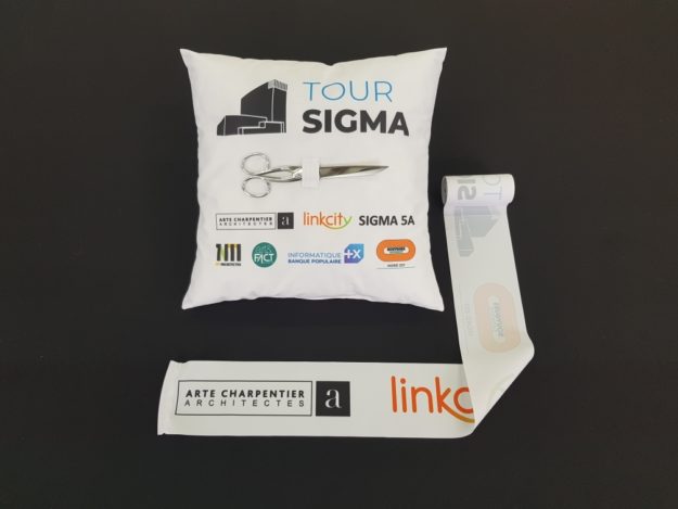 Expert en impression de matériel pour inaugurations, notre entreprise réalise pour vous tous vos projets sur-mesure. Ici, nous avons imprimé un ruban tricolore mais aussi un coussin inaugural. Nous fournissons aussi les ciseaux pour inauguration qu’ils soient DORE, ARGENTES, ou comme ici en acier laqué NOIR. Prix et délai sur simple demande.