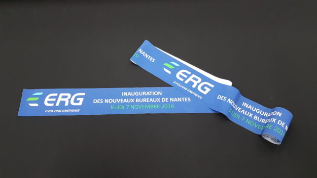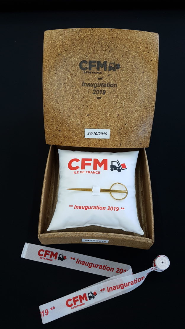 AVS Communication, confectionne des kits inauguraux. Ici un ruban 210gr personnalisé à 100% afin de répondre aux attentes du client. Vous pouvez aussi accompagner votre ruban d’une paire de ciseaux, coussin, housse… Devis sur simple demande.