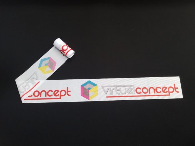 AVS Communication, expert en impression sur tissu, fabrique des rubans de la longueur de votre choix à vos couleurs. Prix et délai sur simple demande.