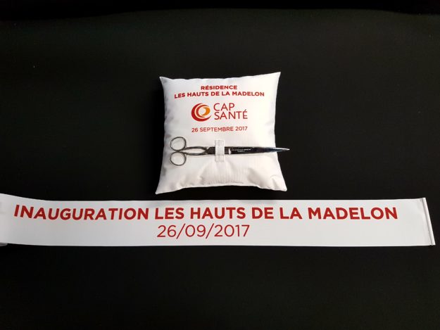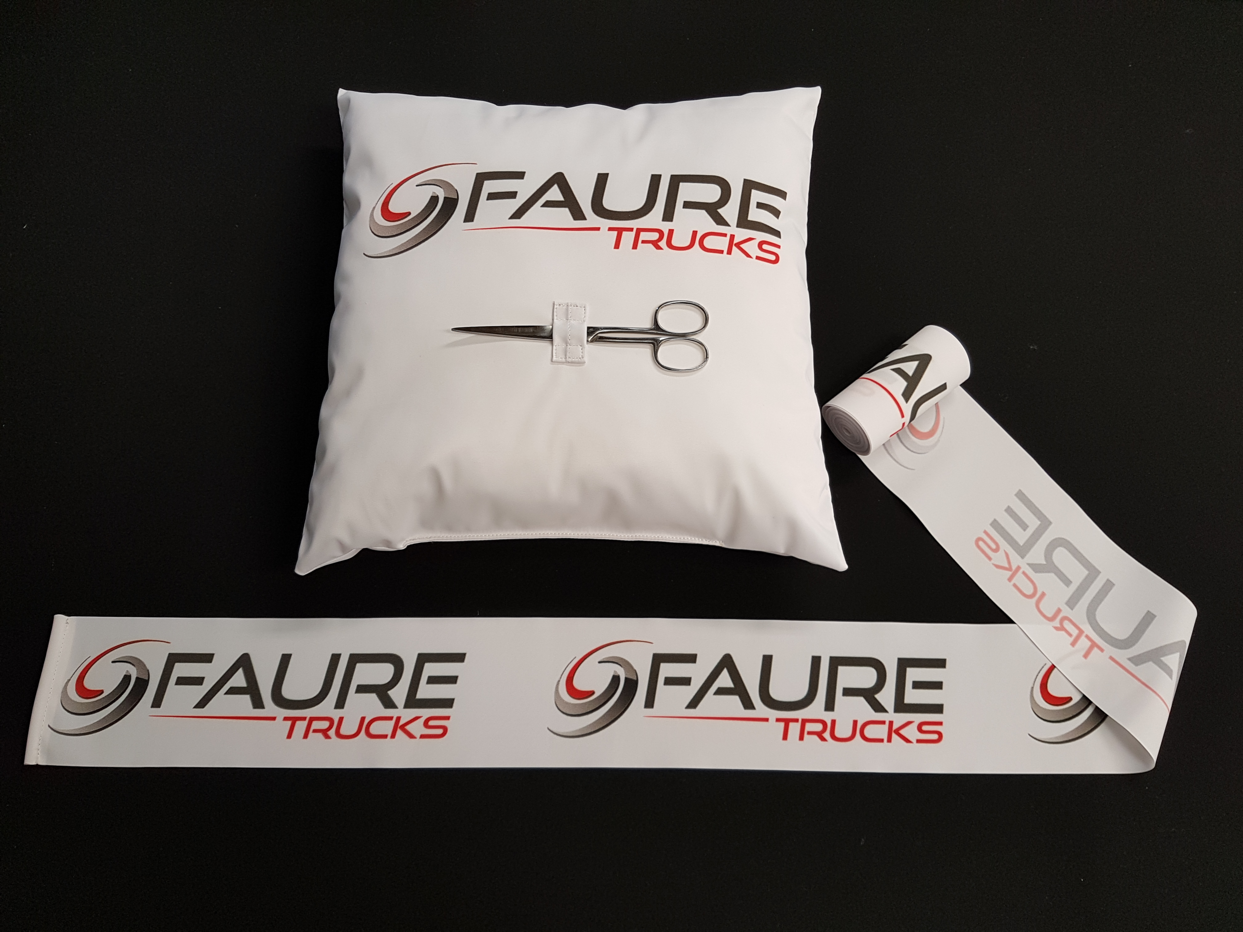 Expert en impression sur tissu, AVS Communication propose des packs d’inauguration à vos couleurs. Choisissez la longueur et le motif: logo, couleurs, slogan …, Assortissez le ruban à un coussin, ou encore à une pochette pour des ciseaux pouvant être eux même gravés selon vos besoins. Prix et délai sur simple demande.