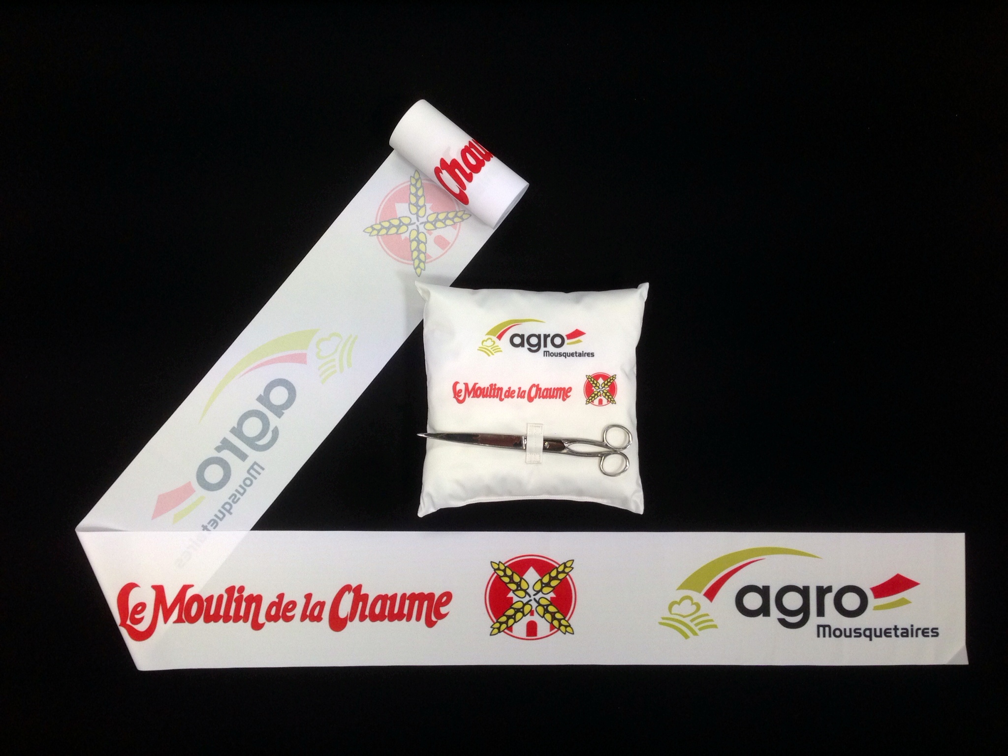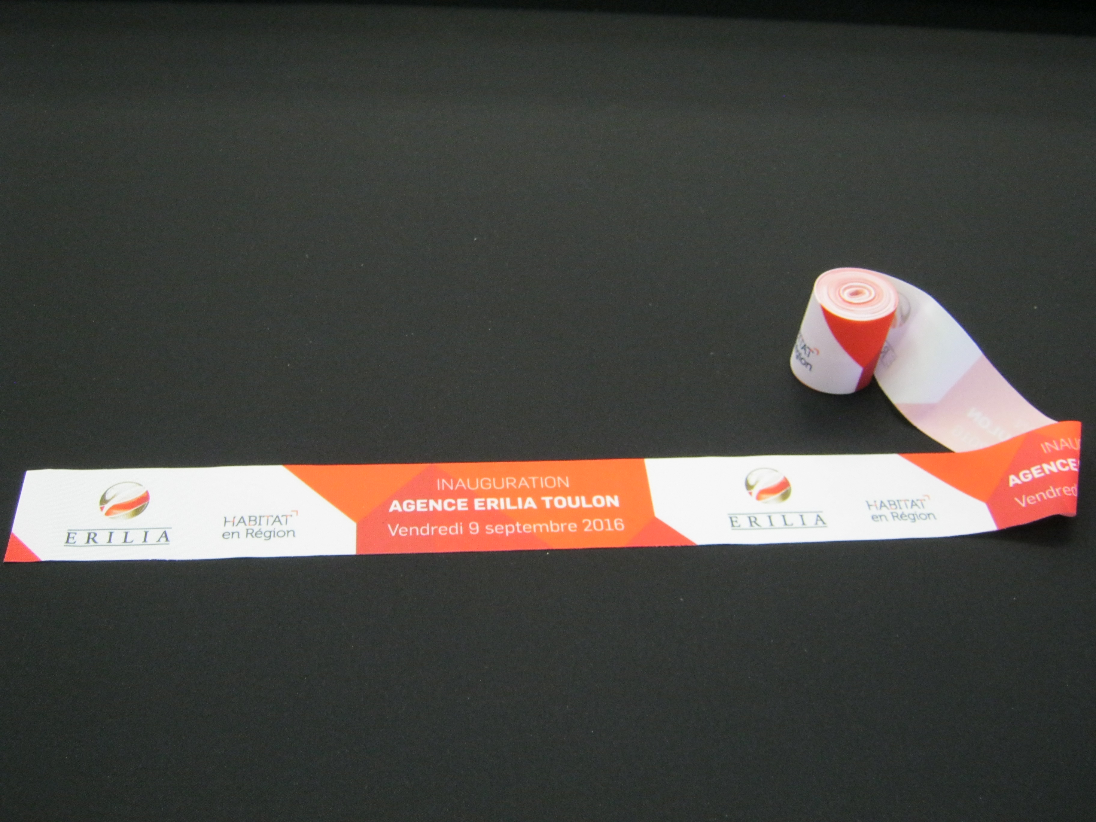 Notre atelier réalise du ruban inaugural sur-mesure. Ici un fanion inaugural imprimé à vos couleurs. Le fichier est réalisé selon vos attentes par notre graphiste ou grâce à un fichier à nous fournir. Prix et délai sur simple demande.