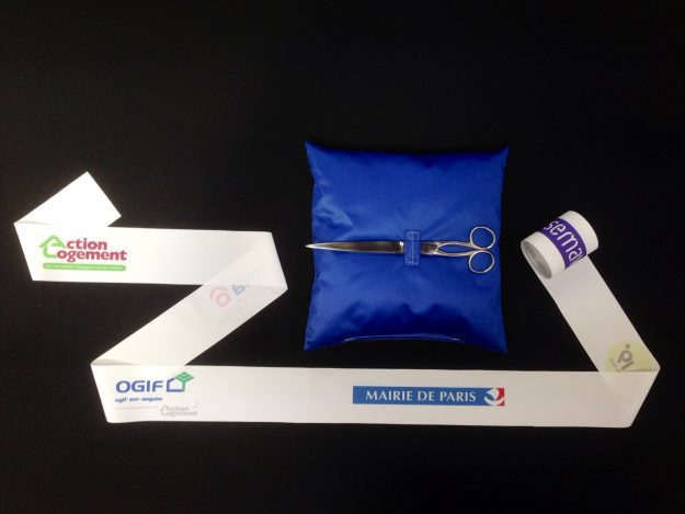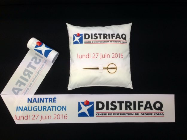 AVS Communication expert français en impression de ruban inauguraux, notre atelier réalise tous vos projets pour vos inaugurations. Ici, notre atelier a fabriqué un kit intégral d’inauguration pour l’entreprise Finvex avec : une caisse en bois recyclé, un coussin personnalisé avec leur logo, un ruban également personnalisé, des potelets pour maintenir le ruban et deux