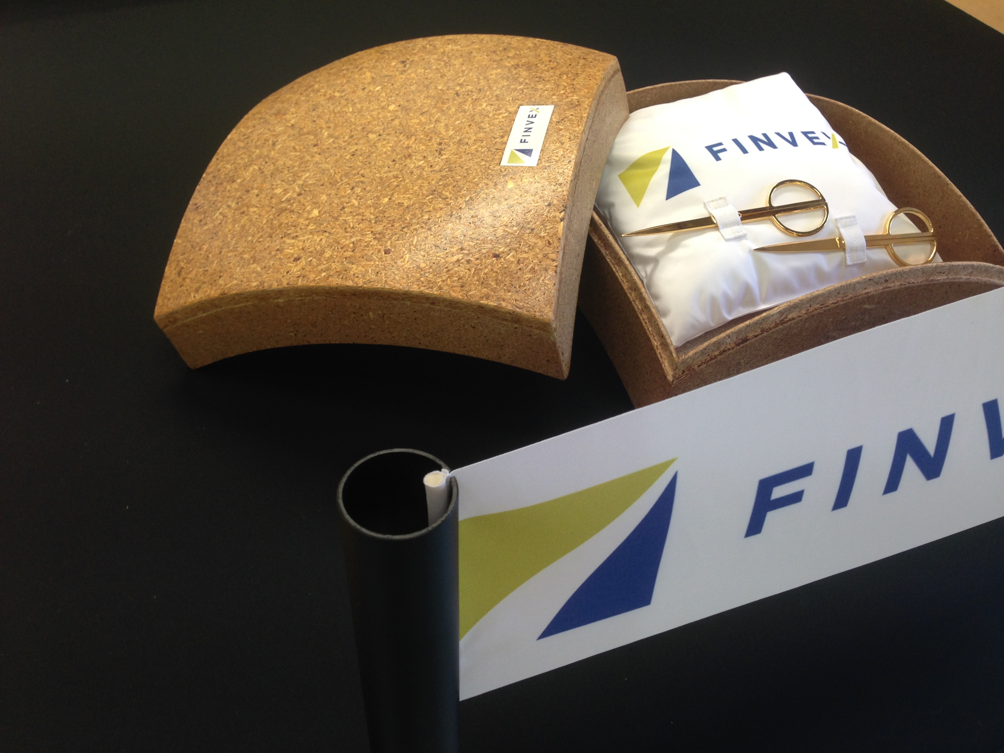 AVS Communication expert français en impression de ruban inauguraux, notre atelier réalise tous vos projets pour vos inaugurations. Ici, notre atelier a fabriqué un kit intégral d’inauguration pour l’entreprise Finvex avec : une caisse en bois recyclé, un coussin personnalisé avec leur logo, un ruban également personnalisé, des potelets pour maintenir le ruban et deux
