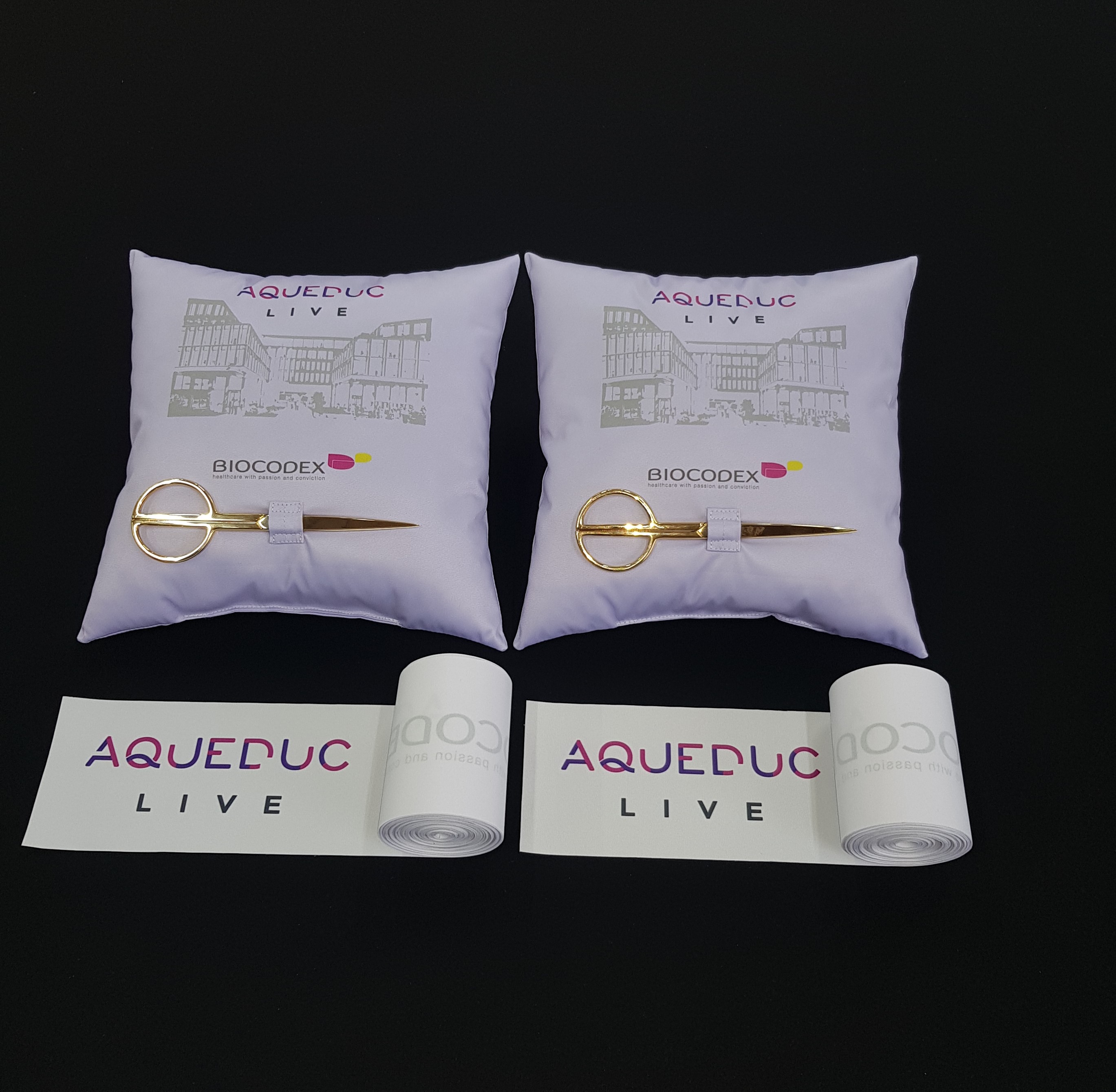 Grâce à AVS COMMUNICATION, la fabrication et la personnalisation de votre kit d‘inauguration sont simples, choisissez votre ruban et vos coussins. Ils seront imprimés selon votre goût et vos envies.