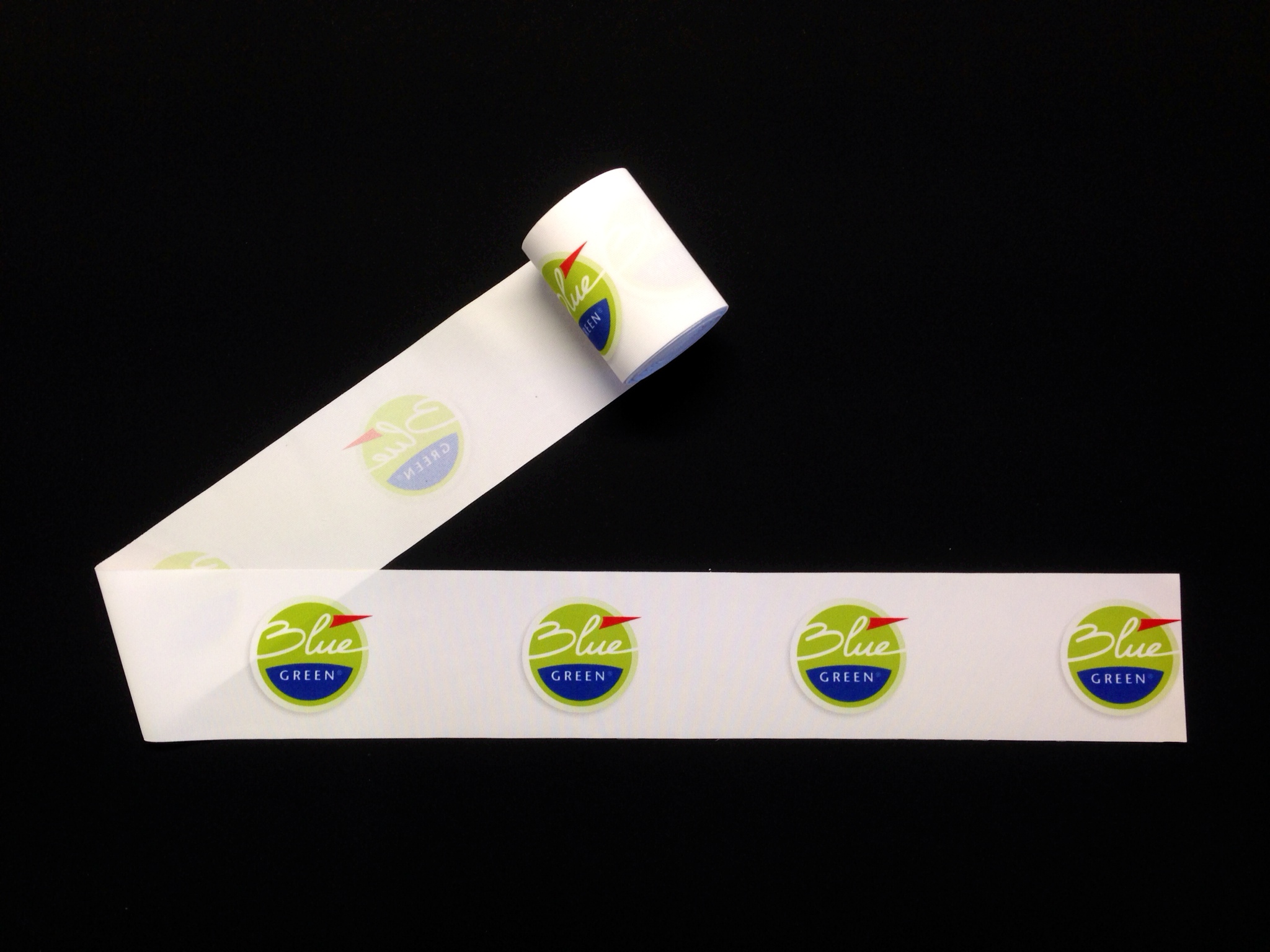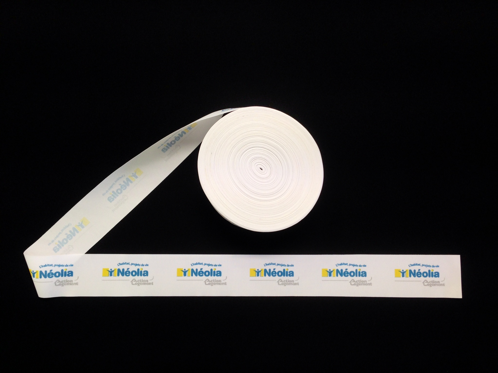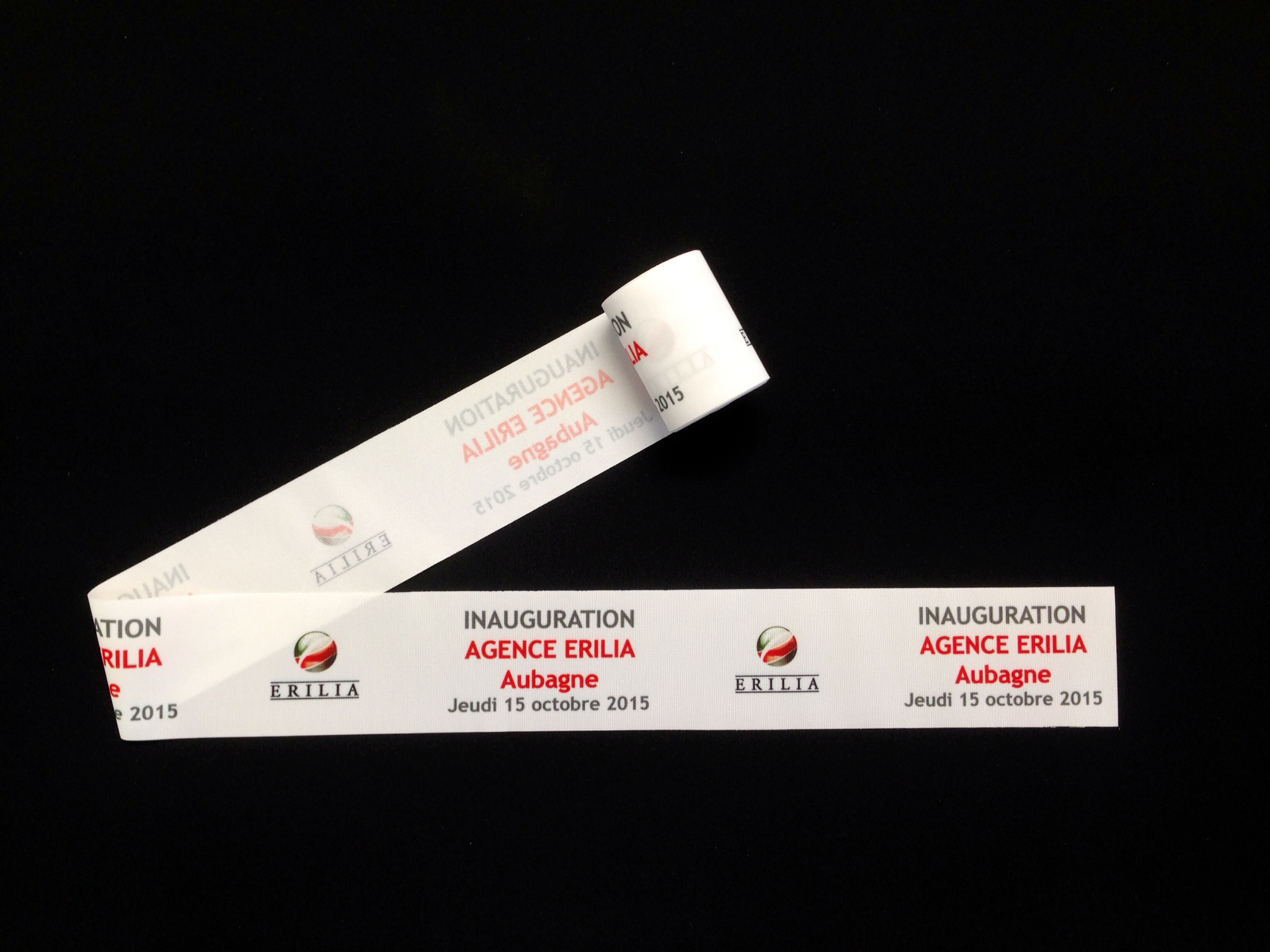 Motifs inauguraux sur ruban imprimé à fond blanc