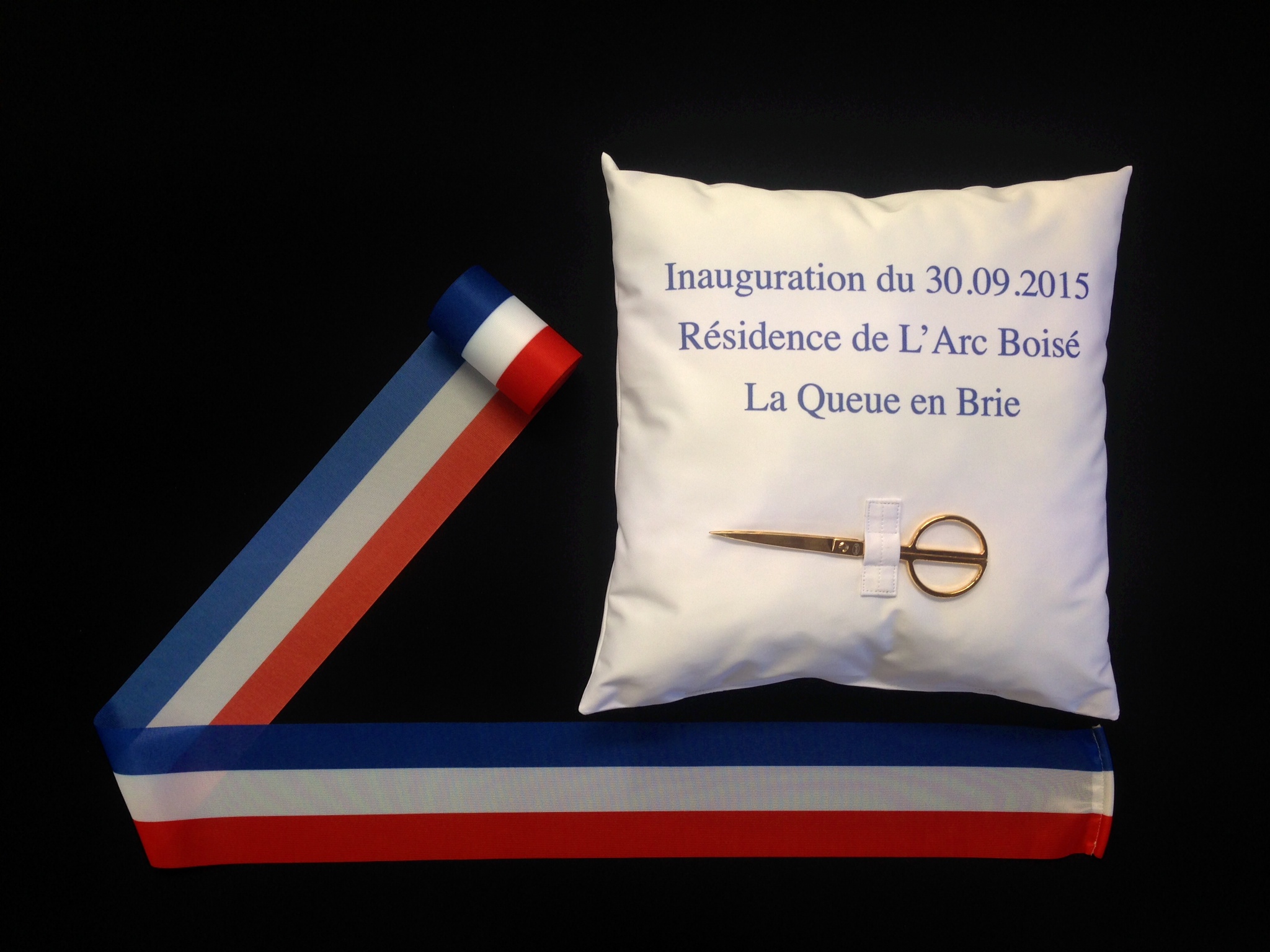 Spécialisée dans l’impression par sublimation sur différents supports, AVS COMMUNICATION vous propose désormais de larges possibilités de kit inauguraux, personnalisables à souhait. Vous pouvez choisir la largeur et la longueur de votre bande inaugurale, le motif répété, ainsi que la maille du tissu support. Nous vous proposons également des coussins inauguraux, ciseaux gravés ou non