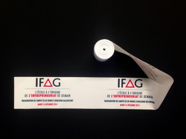 Expert en fabrication de ruban inaugural tissé imprimé, notre atelier basé à Dijon réalise près de 600 commande chaque année. Ici, un ruban pour la société V MOTECH, spécialisée dans l’ingénierie et les essais groupe motopropulseur. Le ruban est réalisé sur-mesure, au format du client selon ses attentes et besoins. Prix et délais sur simple