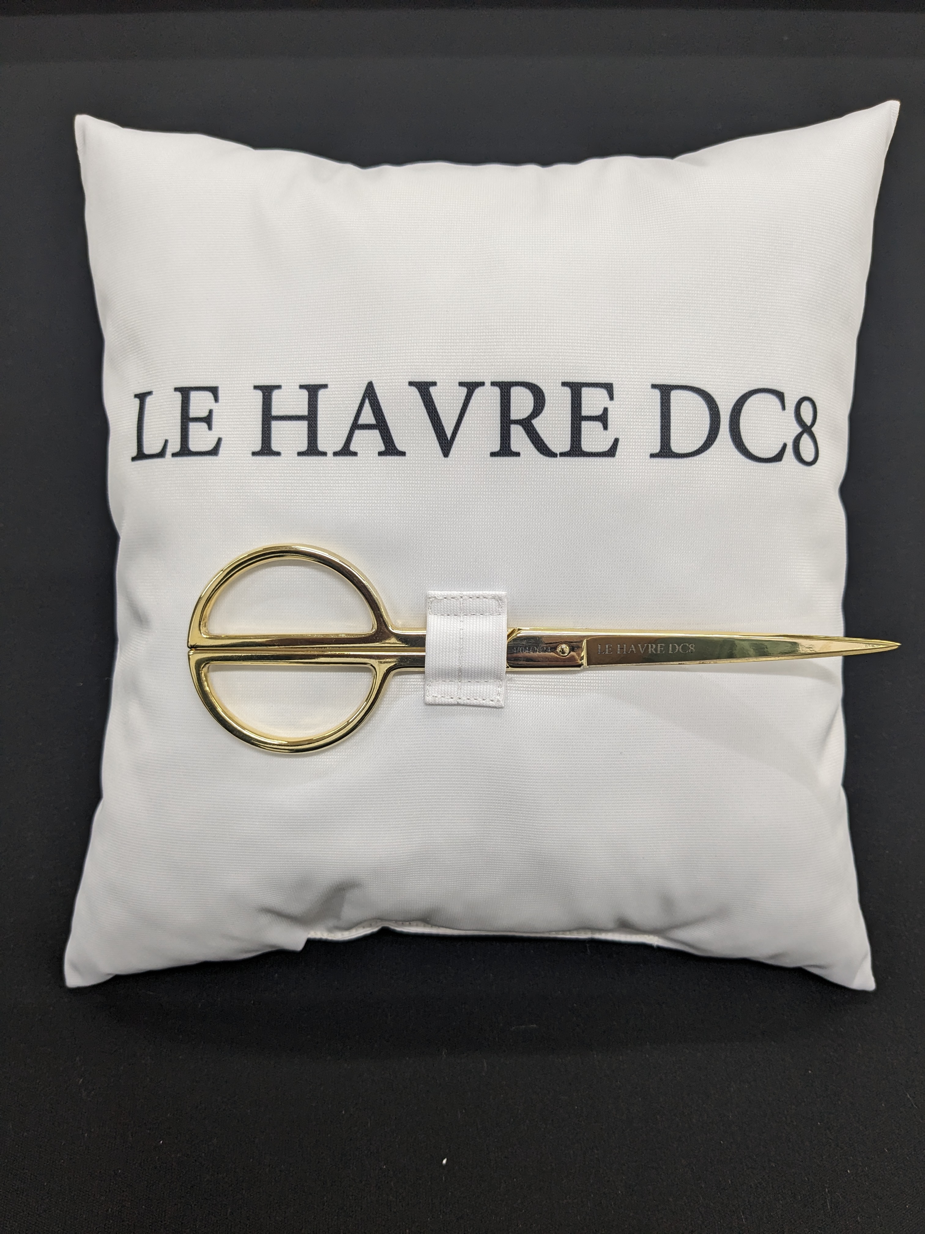 AVS COMMUNICATION, une référence incontournable dans le domaine des kits d’inauguration, a été choisie par l’entreprise LE HAVRE DC8 pour la conception de leur coussin assorti d’une paire de ciseaux dorés.