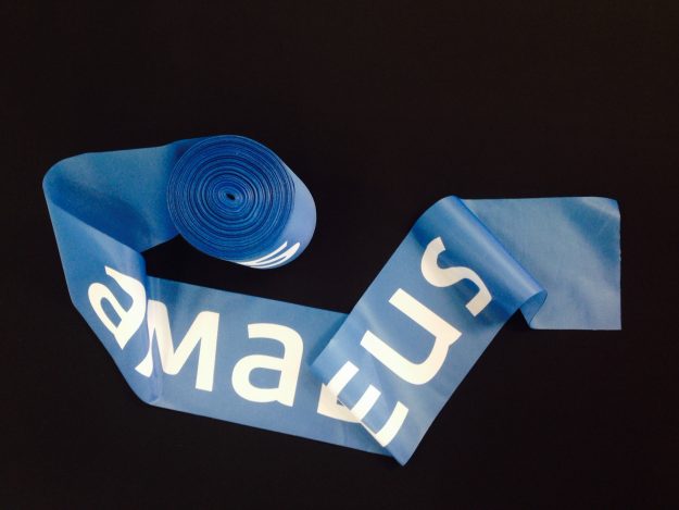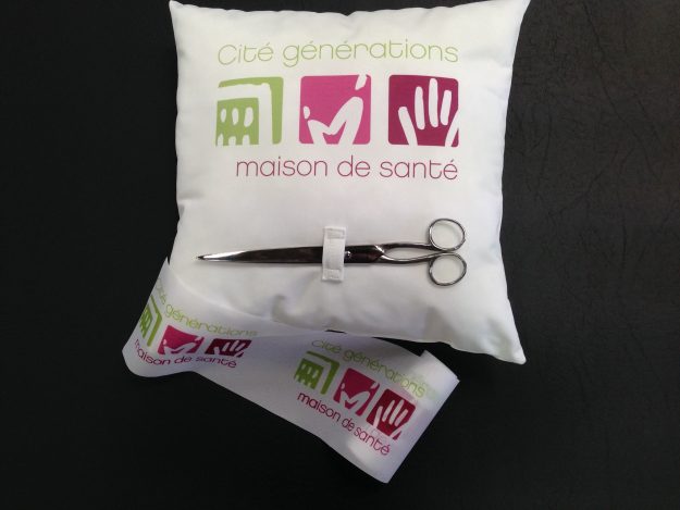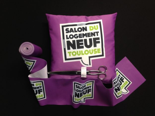 Spécialiste en fabrication de ruban inaugural personnalisé, AVS Communication réalise tous vos projets d’impressions. Ici, un rouleau de ruban inaugural de 100m de long et 40mm de large imprimé en deux couleurs. Le ruban est coupé à chaud sur les bords et le tissu utilisé est une maille 110gr/m2. Prix et délais sur simple demande.