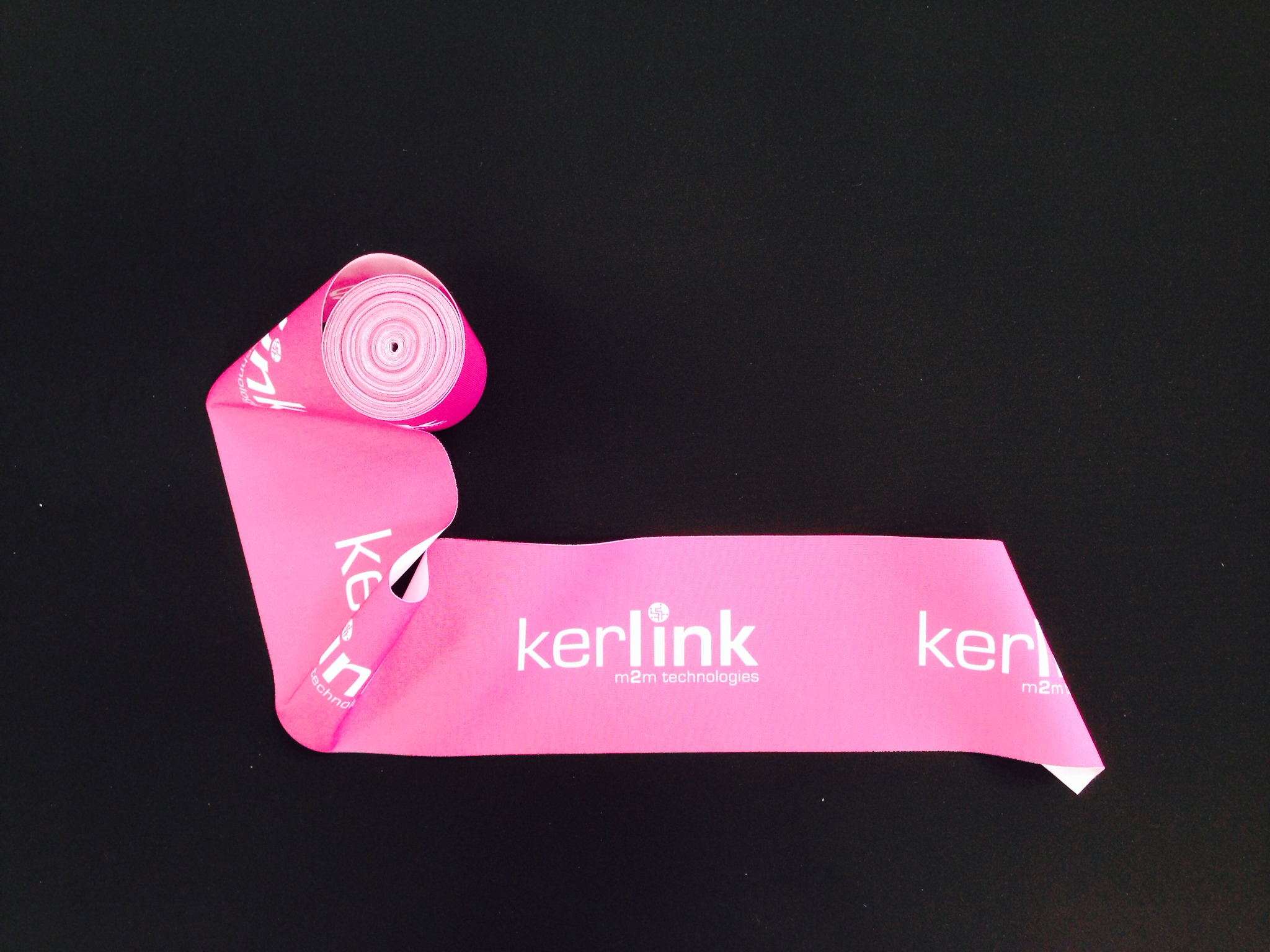 Spécialiste en fabrication de ruban inaugural personnalisé, AVS Communication réalise tous vos projets d’impressions. Ici, un rouleau de ruban inaugural de 100m de long et 40mm de large imprimé en deux couleurs. Le ruban est coupé à chaud sur les bords et le tissu utilisé est une maille 110gr/m2. Prix et délais sur simple demande.