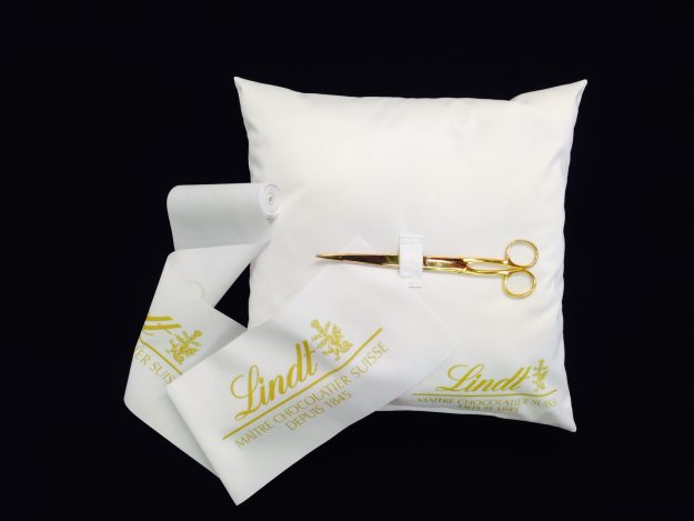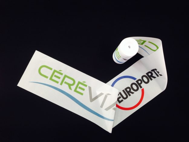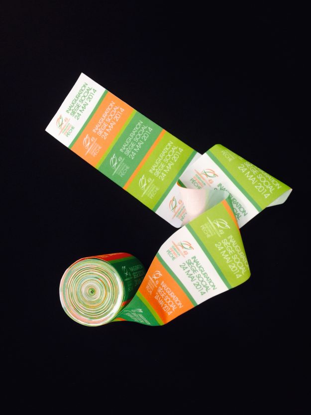 Pour vos événements, notre atelier réalise dans son atelier de Dijon du ruban inaugural imprimé à vos couleurs. Sur une base de tissu blanc, nous imprimons les formes, textes, logos et couleurs de votre choix. Ce ruban inaugural fourni en rouleau est de taille variable jusqu’à 180mm de large et sans limite de longueur. Plus