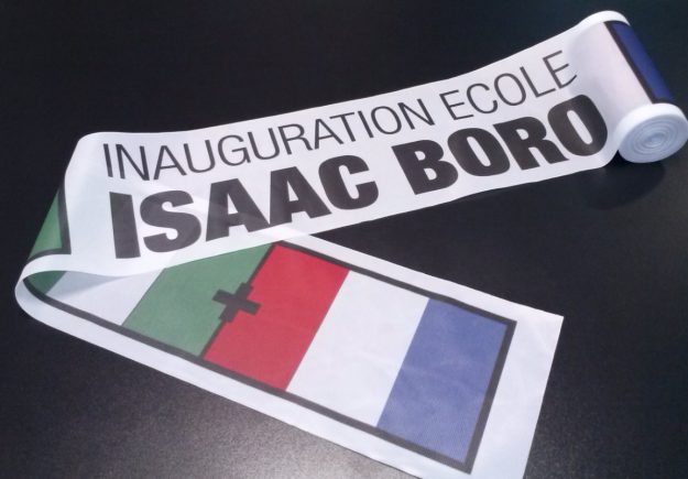 Spécialiste en impression grand format sur textile, AVS Communication réalise vos outils personnalisés pour vos inaugurations. Ici, à Dijon, pour l’inauguration du nouvel Hôtel Campanile : un ruban inaugural de 180mm de haut – 3m de long, un coussin 40x40cm et une paire de ciseaux « or ». Conception visuelle : Agence AH