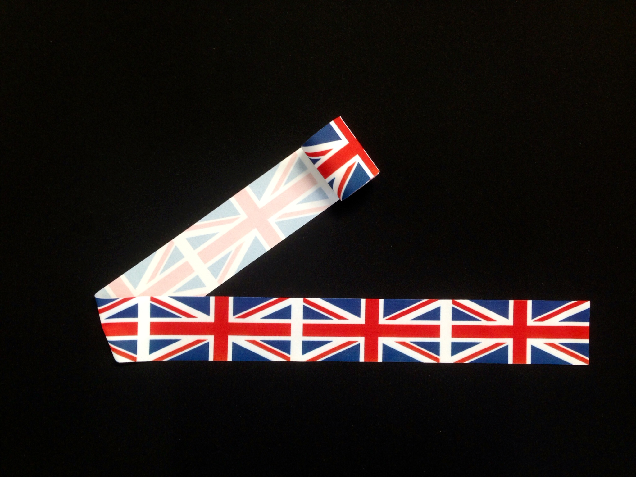 Ici, nous avons une répétition de drapeaux anglais fabriqué grâce à nos machines d’impression par sublimation.