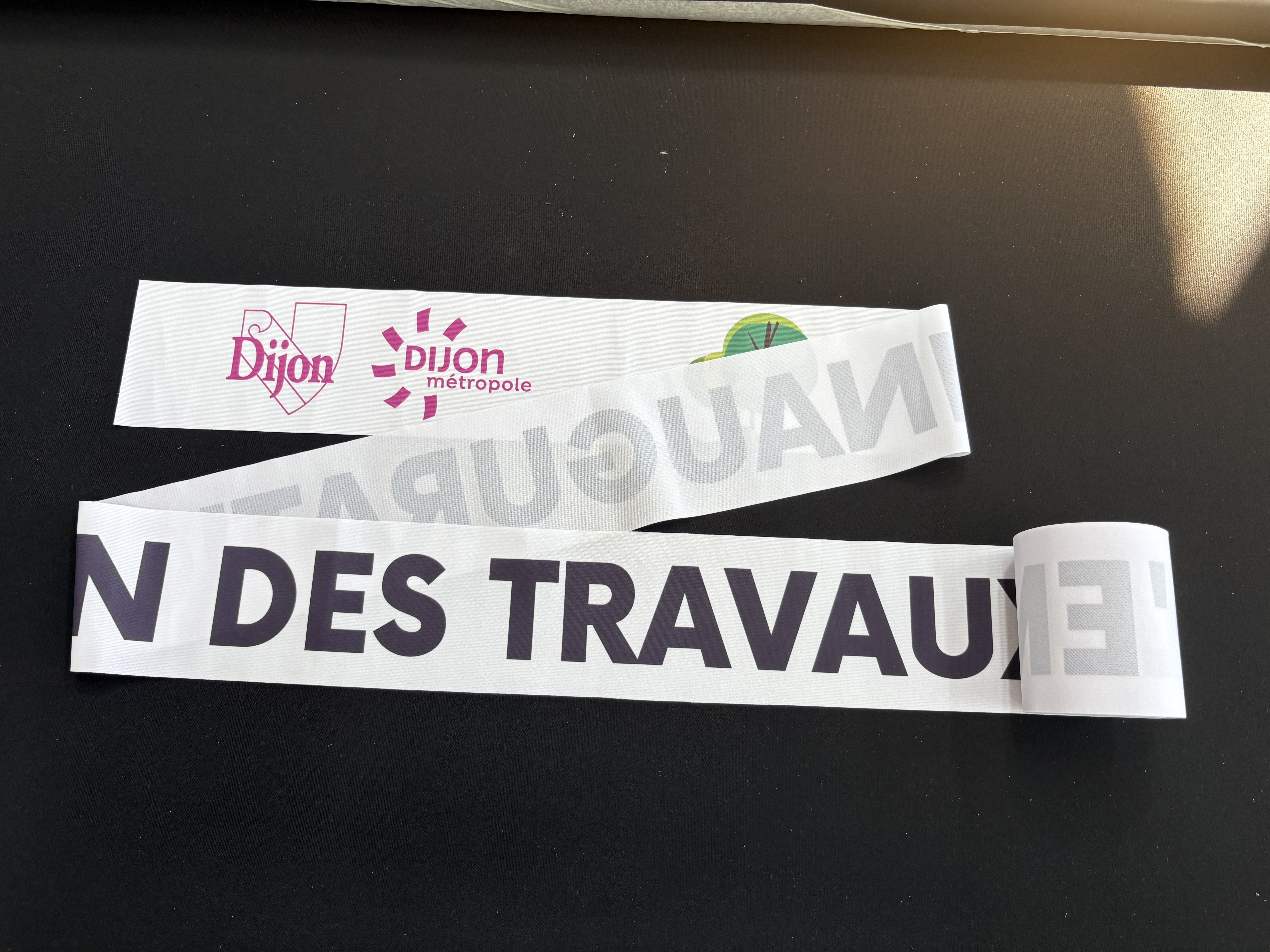 Pour ses récents événements, Dijon Métropole a fait appel au savoir-faire local d’AVS Communication. Nous avons fourni un ruban de 5 mètres personnalisé, fabriqué directement dans nos ateliers à Dijon.